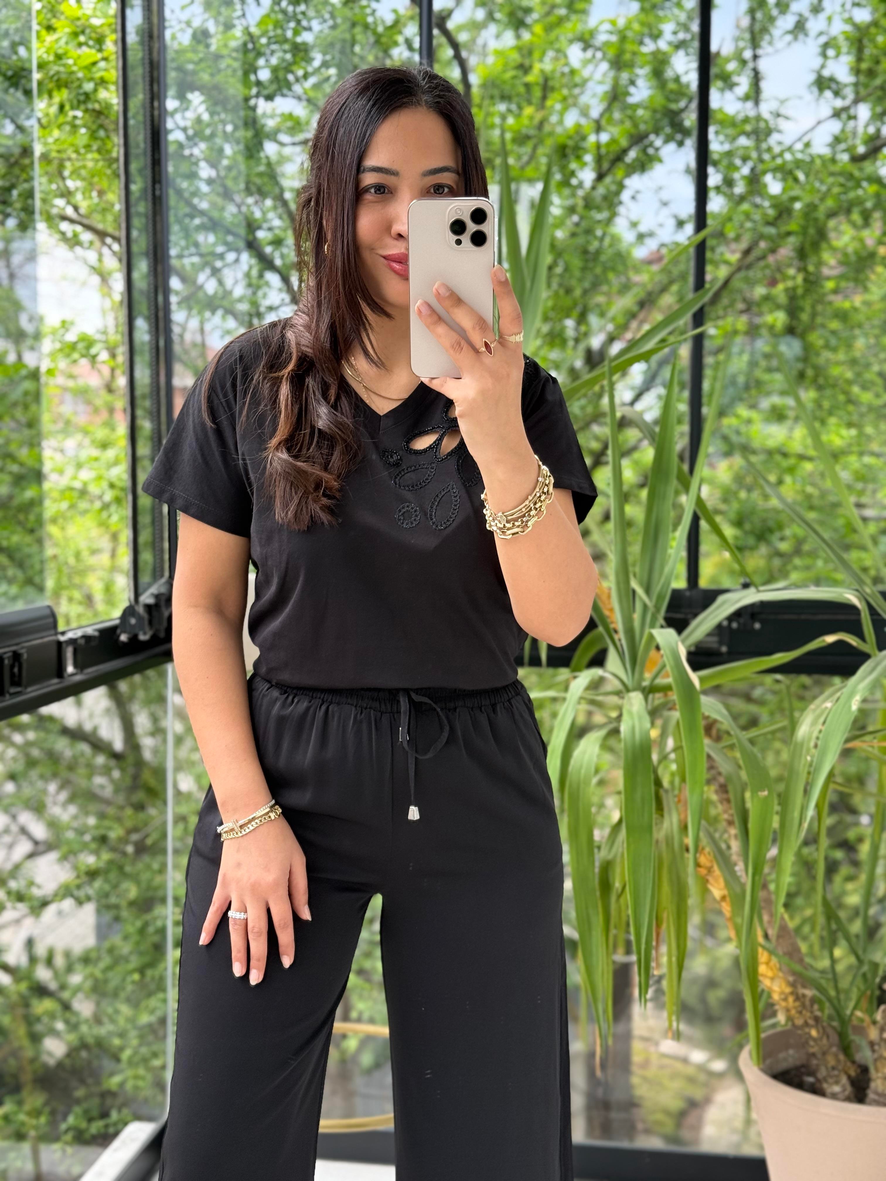 Tek Omzu Lazerli Boncuklu Siyah