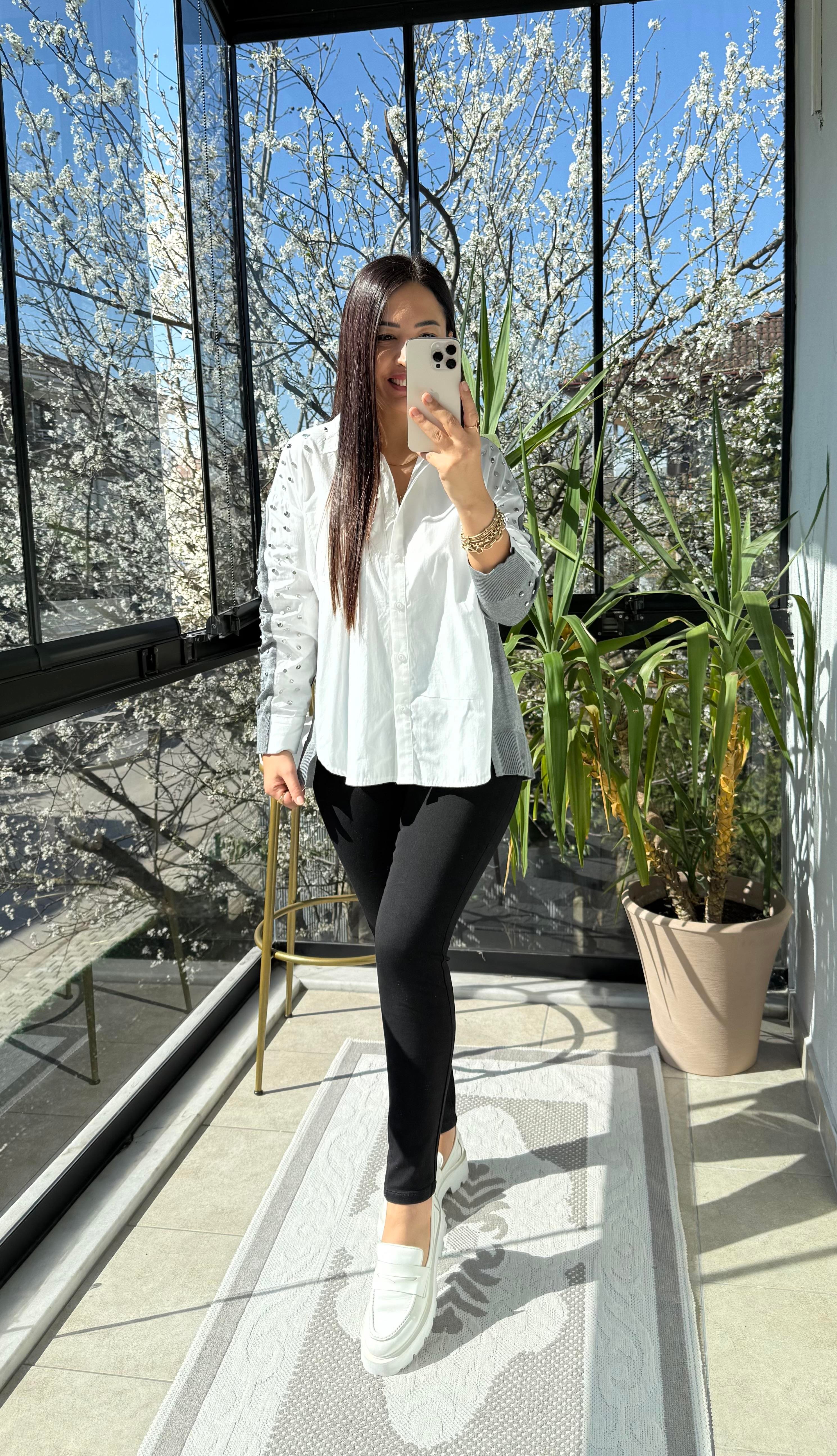 Triko Poplin Mix Çakımlı Gömlek Beyaz
