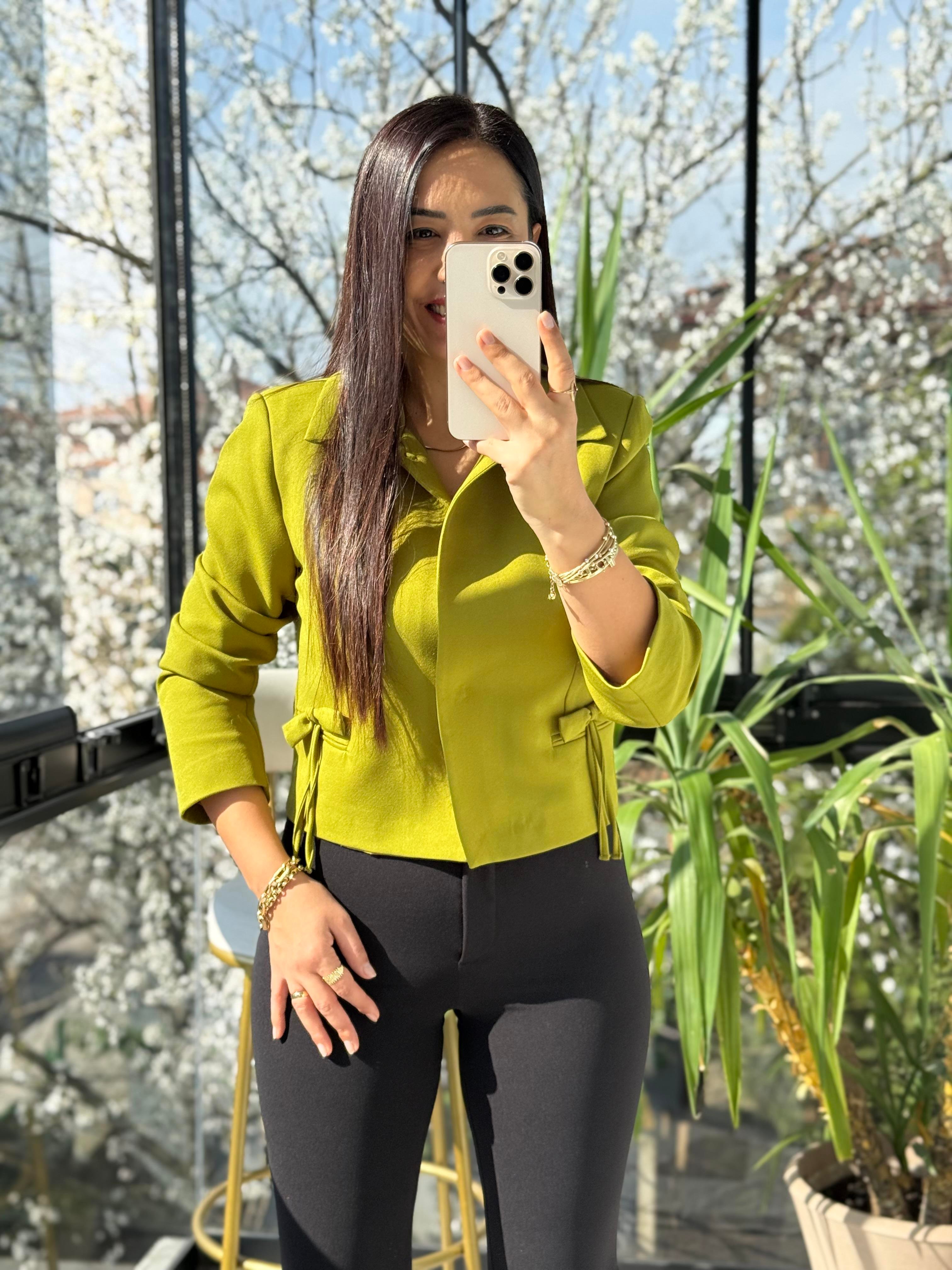 Uzun Kol Fiyonklu Blazer Ceket Kivi Yeşili