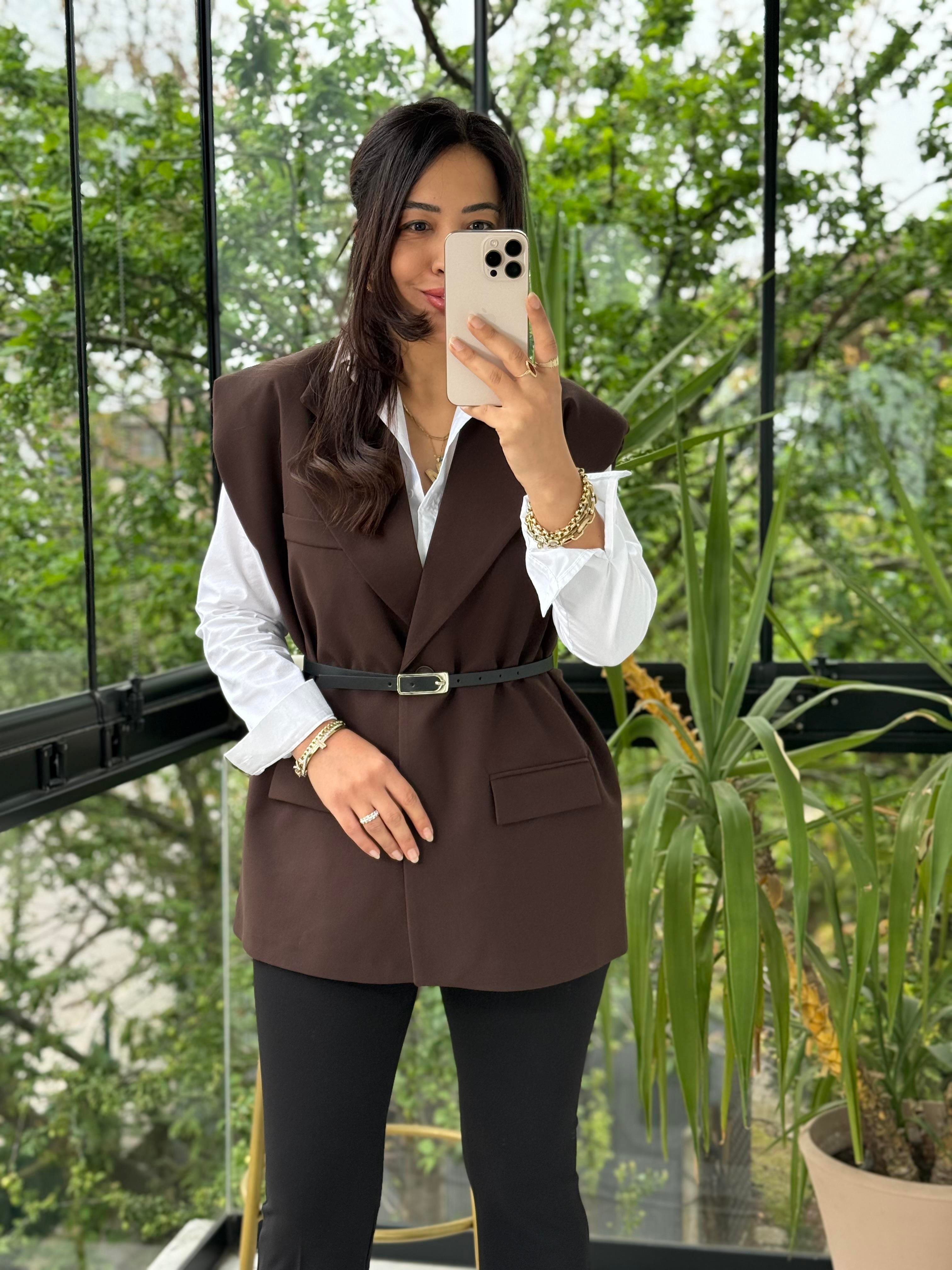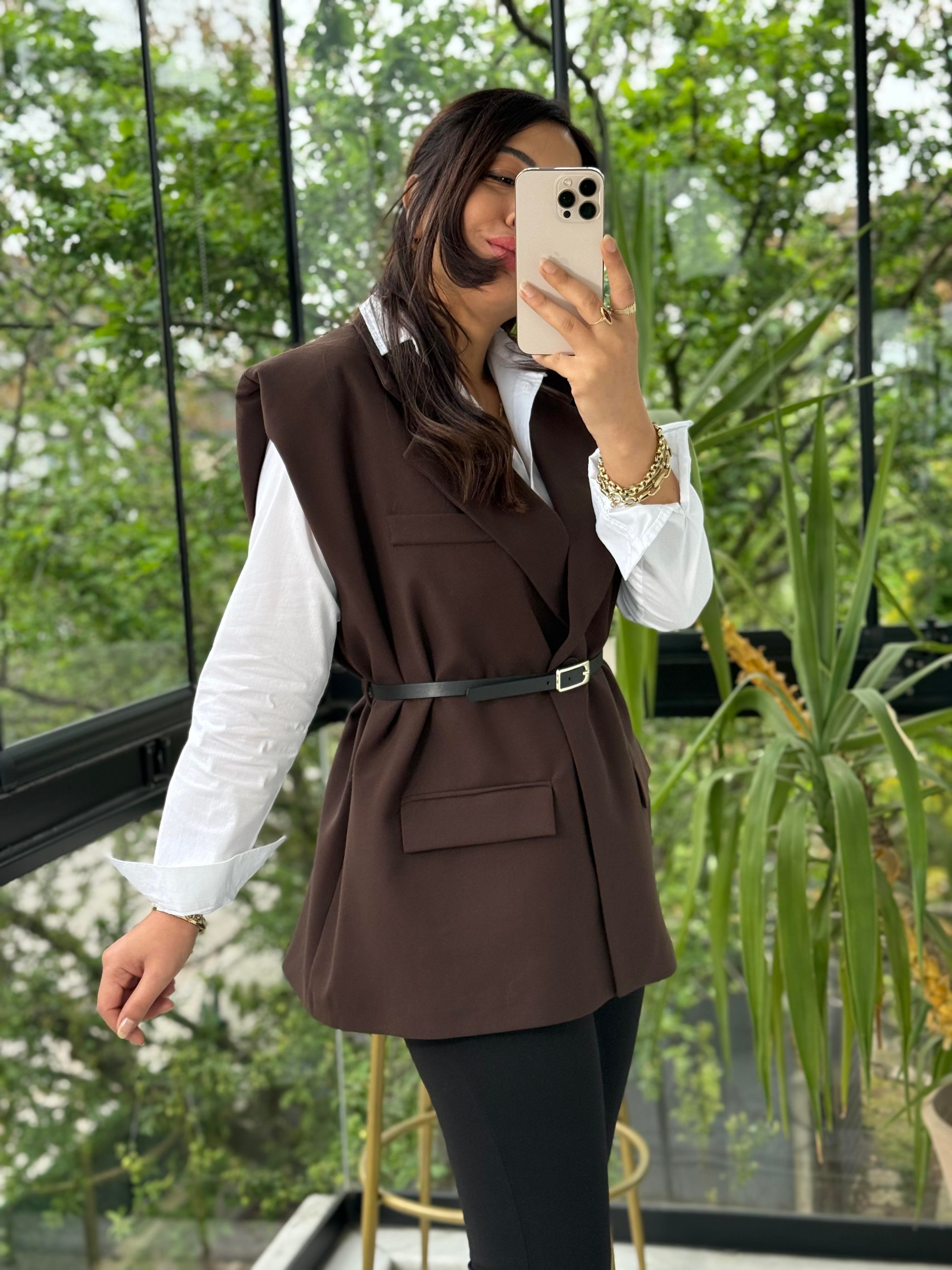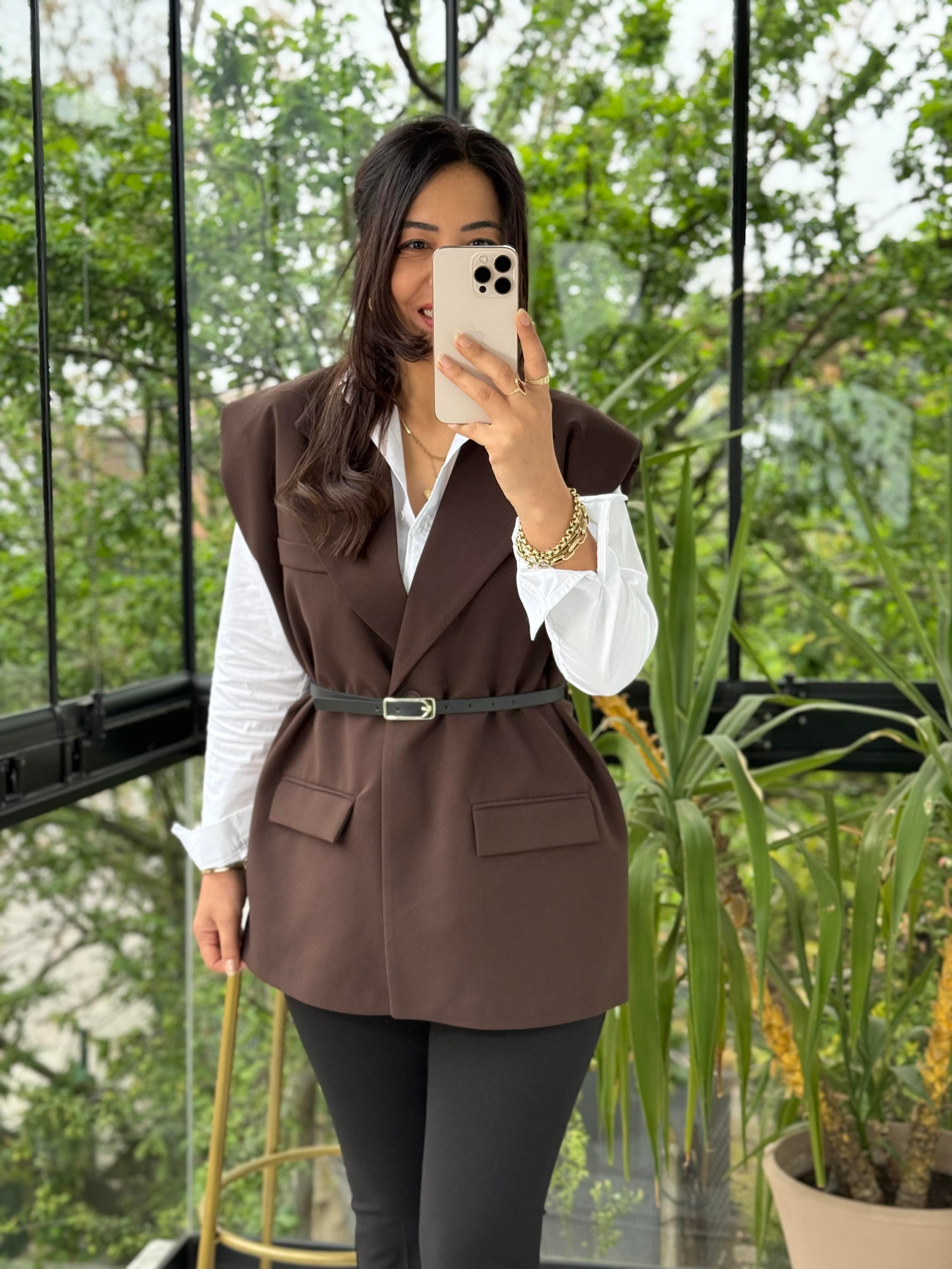 Vatkalı Kemerli Yelek Kahve