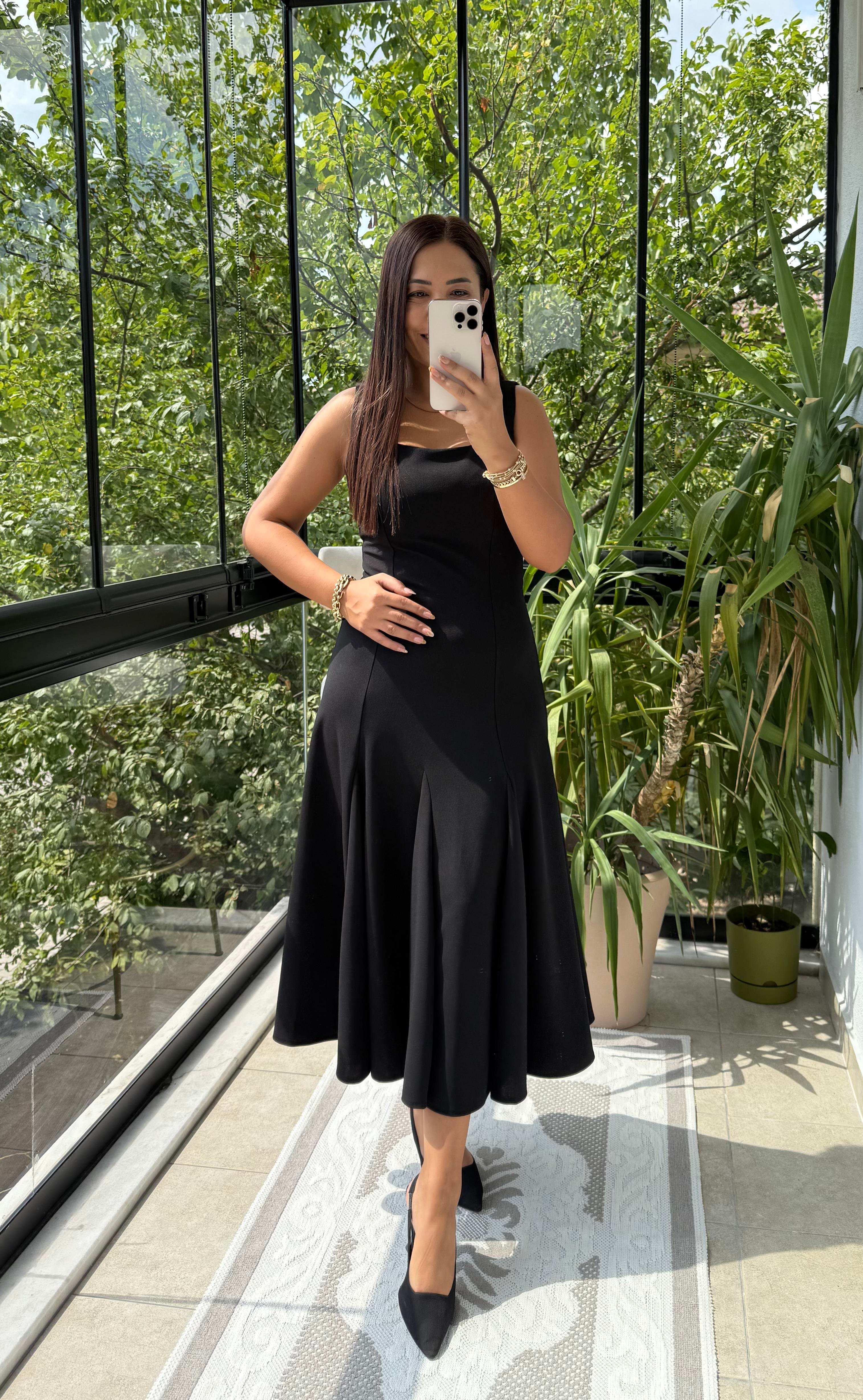 Volanlı Slim Elbise Siyah