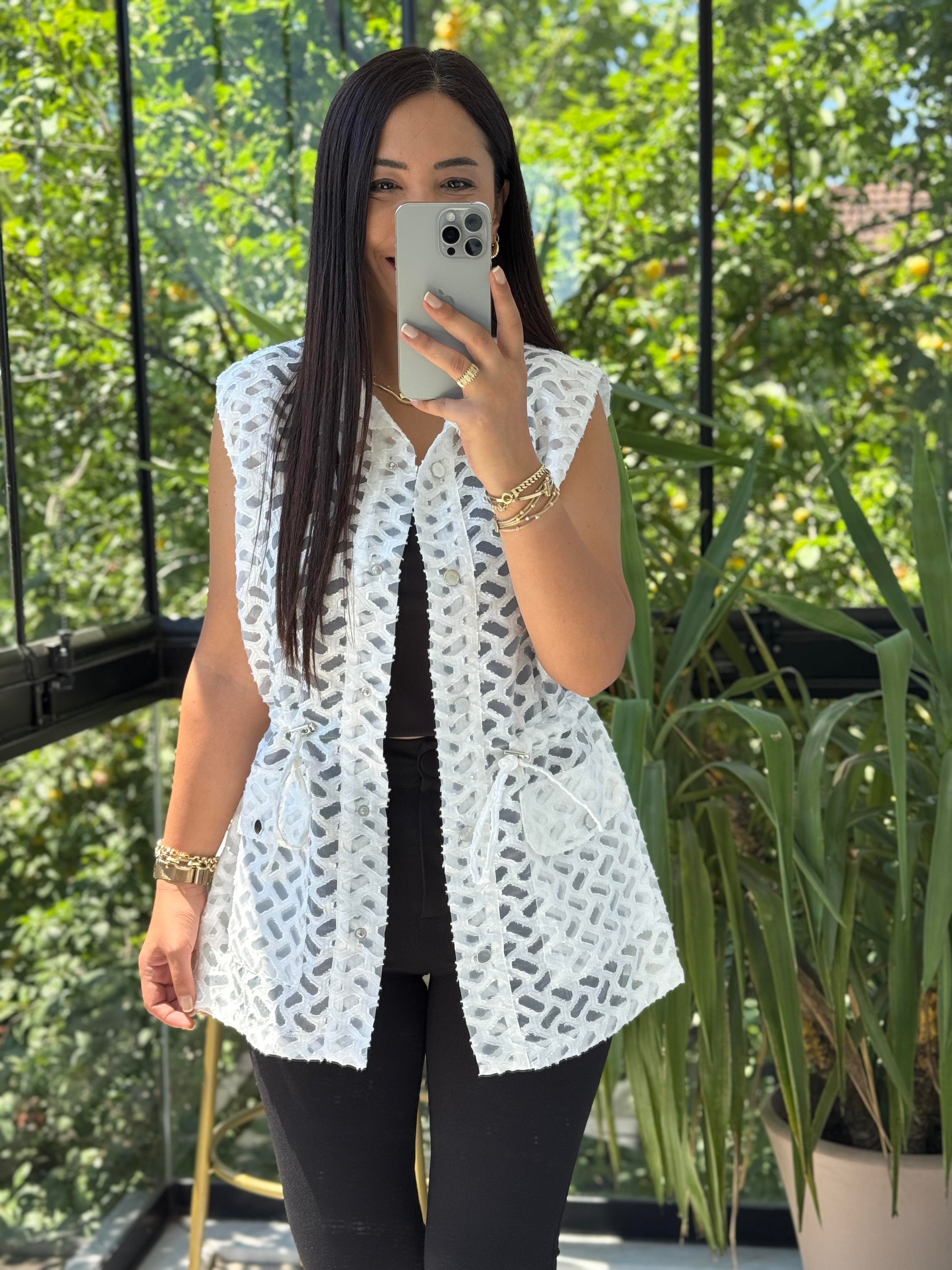 Yakma Bağlamalı Yelek Beyaz