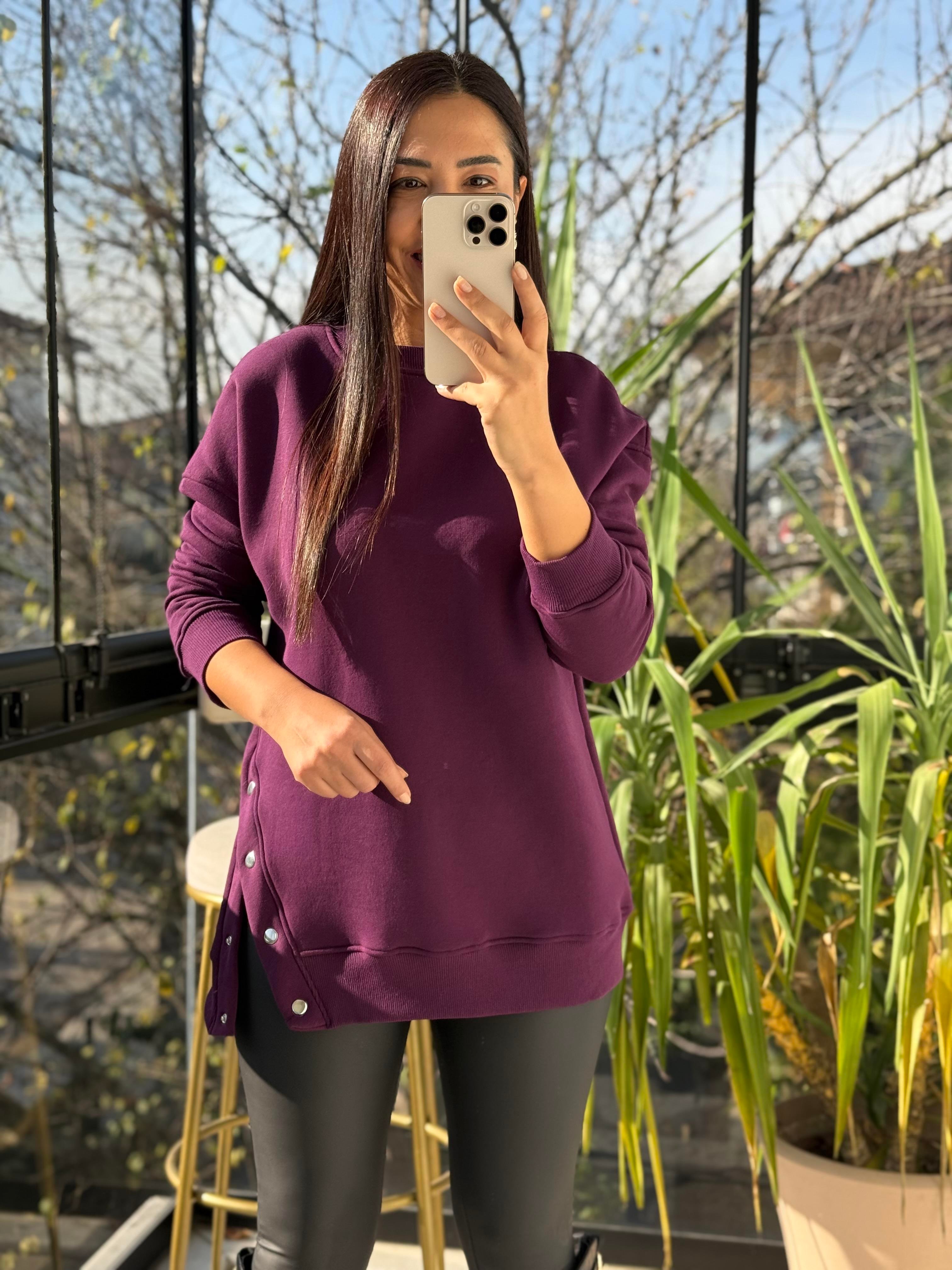 Yanı Çıtçıtlı Sweatshirt Mürdüm