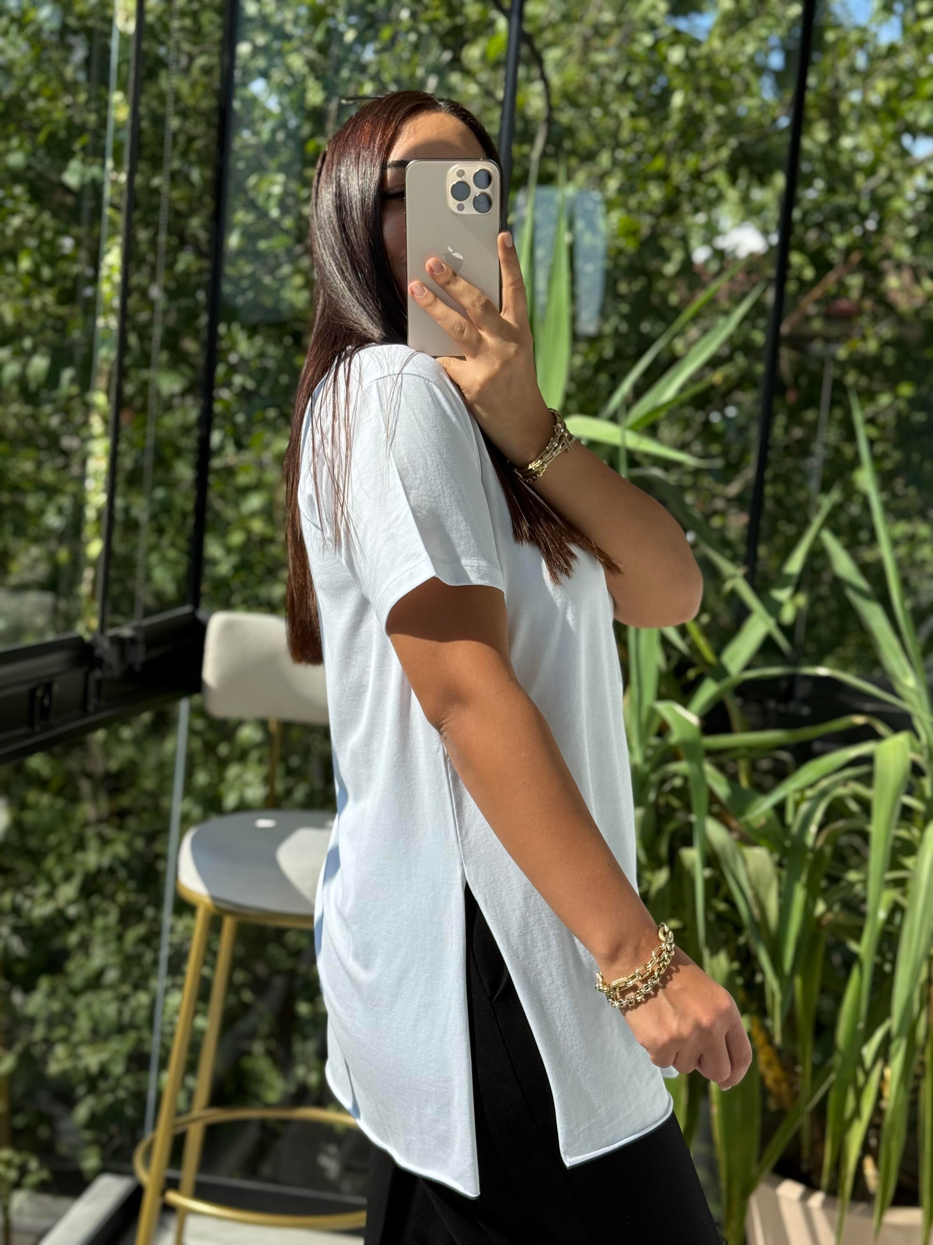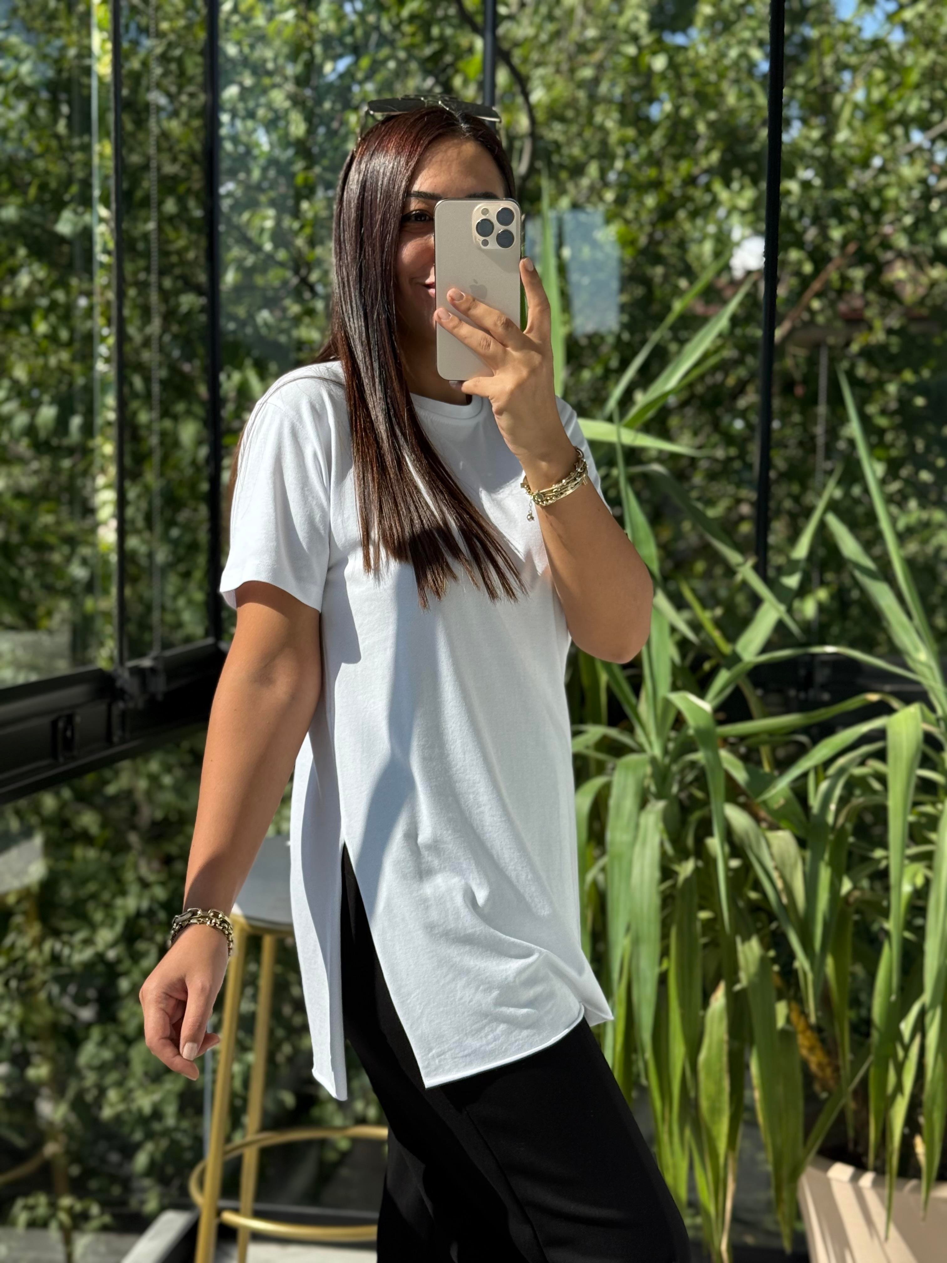 Yanları Yırtmaçlı Tişört Siyah Yanları Yırtmaçlı Tişört Beyaz