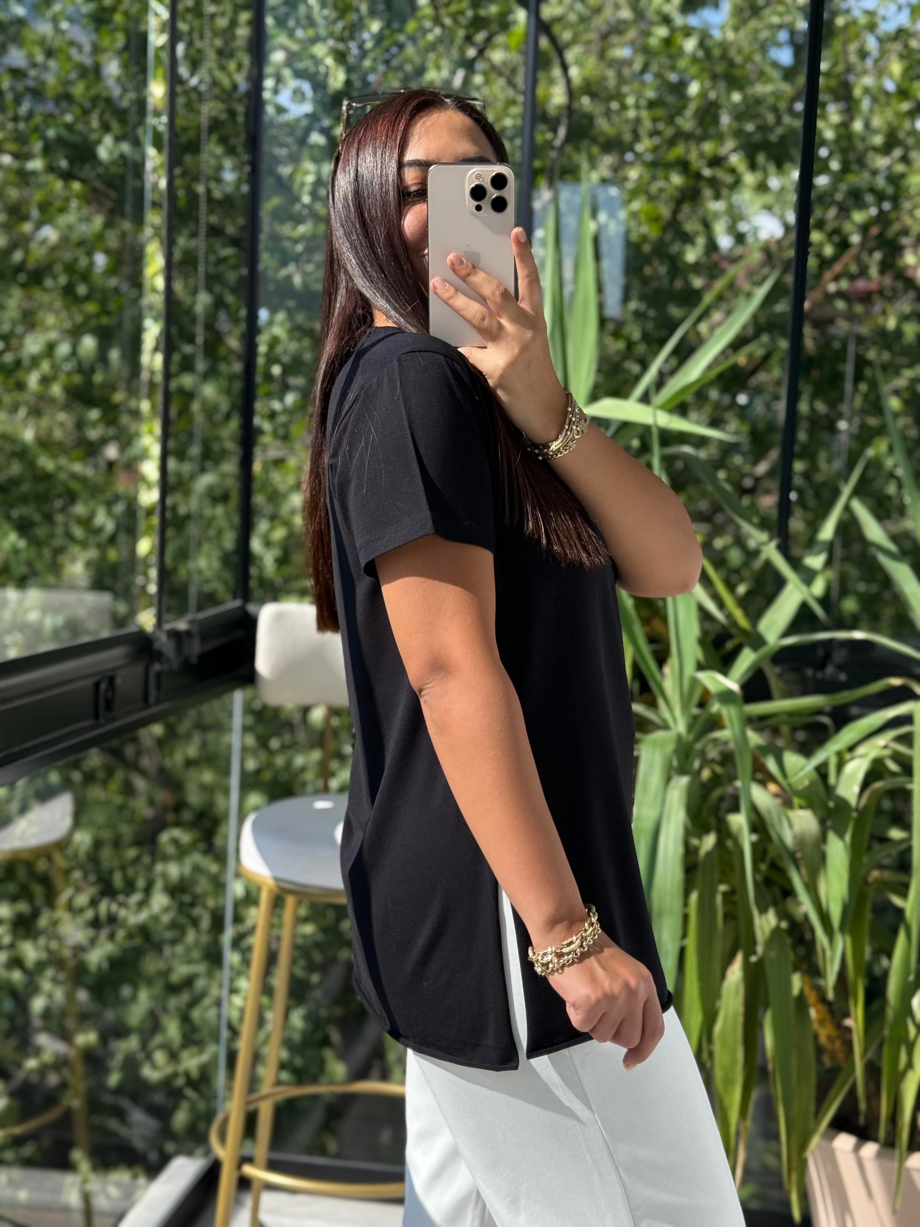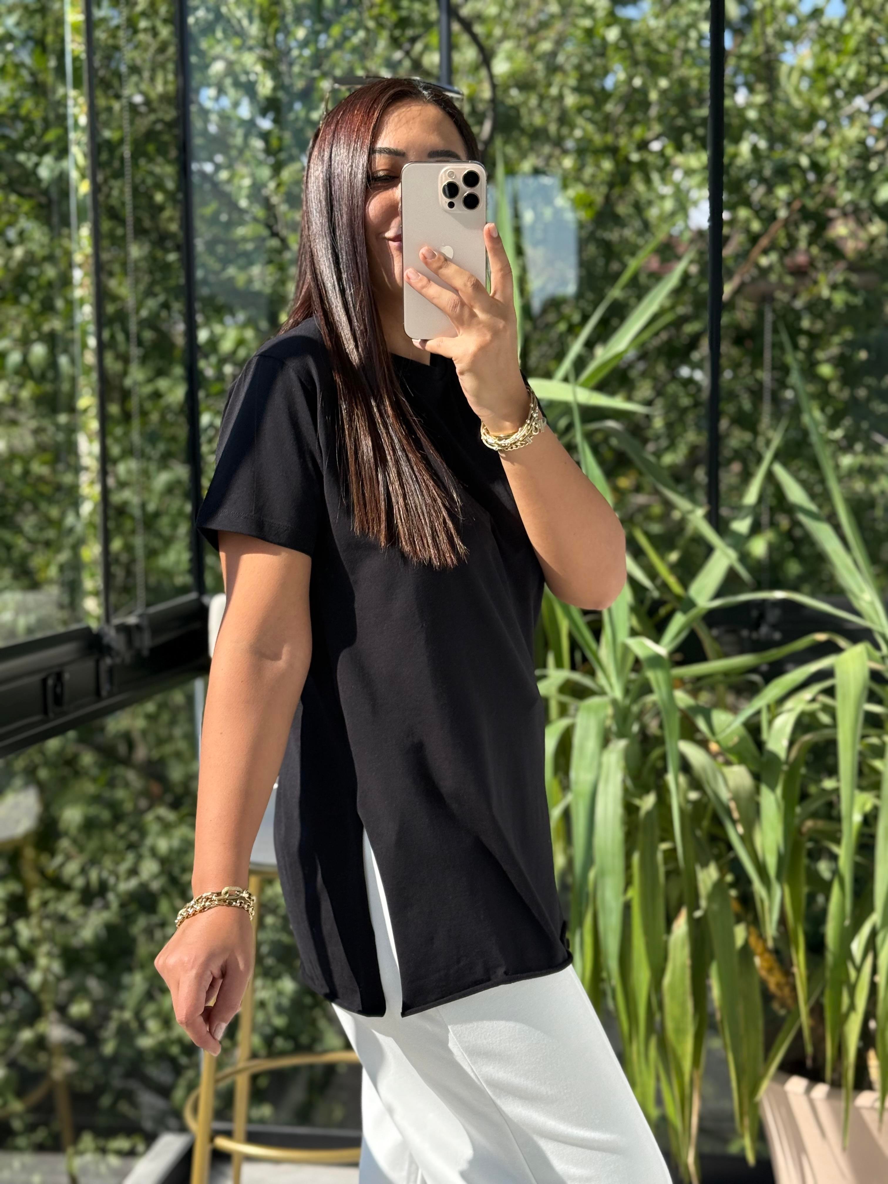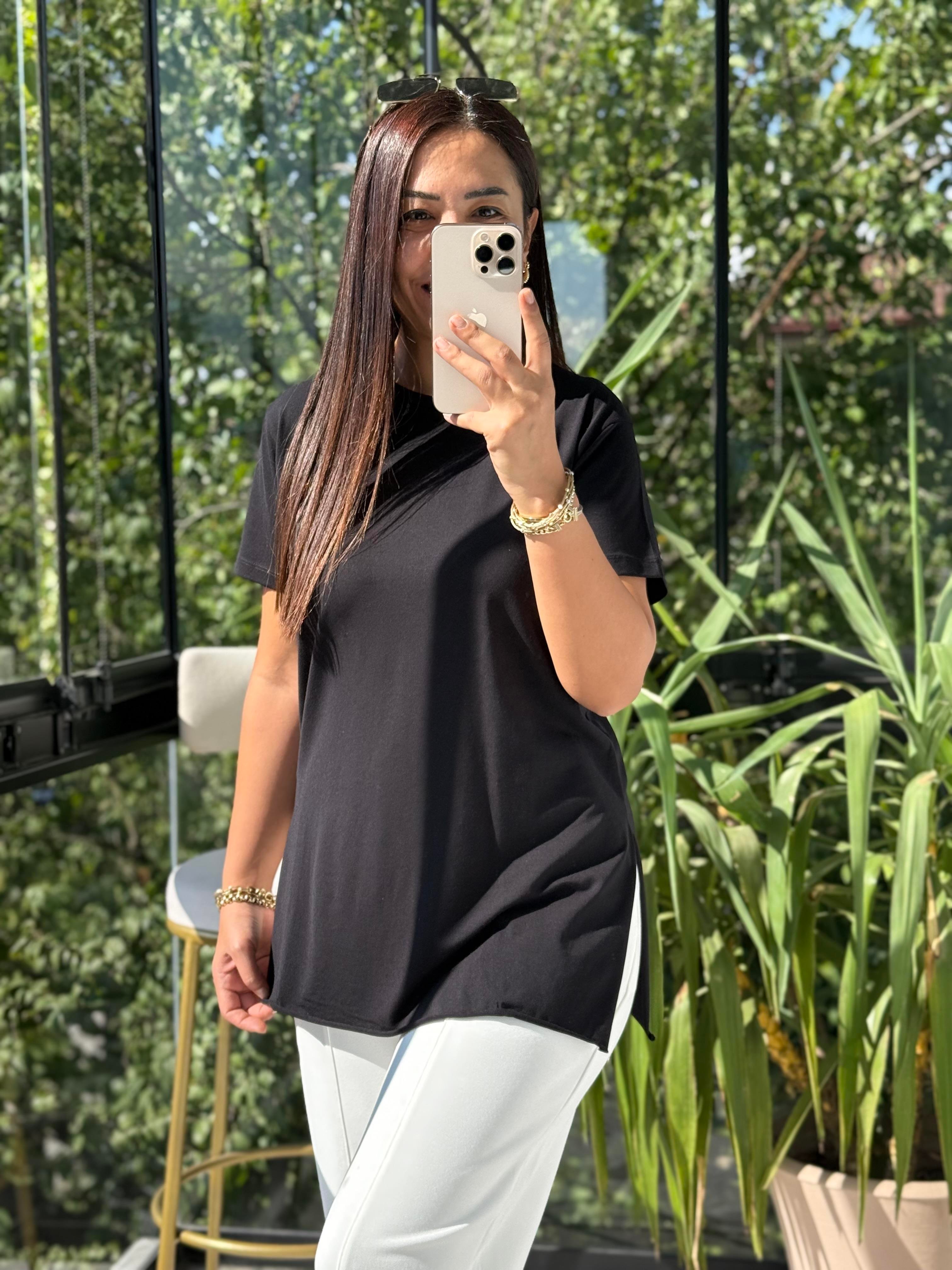 Yanları Yırtmaçlı Tişört Siyah Yanları Yırtmaçlı Tişört Beyaz